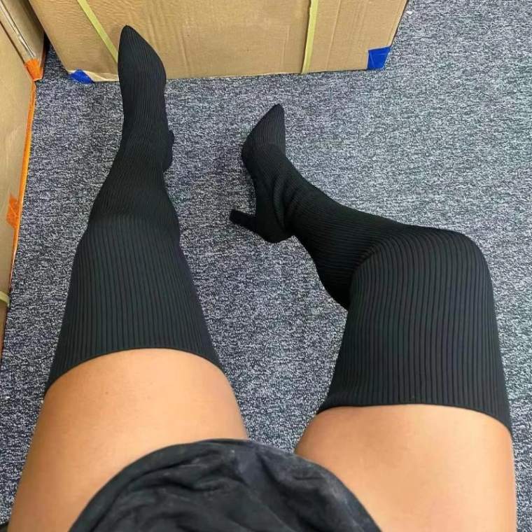Essa bota over the knee canelada preta é a definição de estilo contemporâneo. Com visual tipo meia, ela se ajusta perfeitamente às pernas, criando um efeito alongador e super elegante. Ideal para quem busca conforto sem abrir mão de um look poderoso.