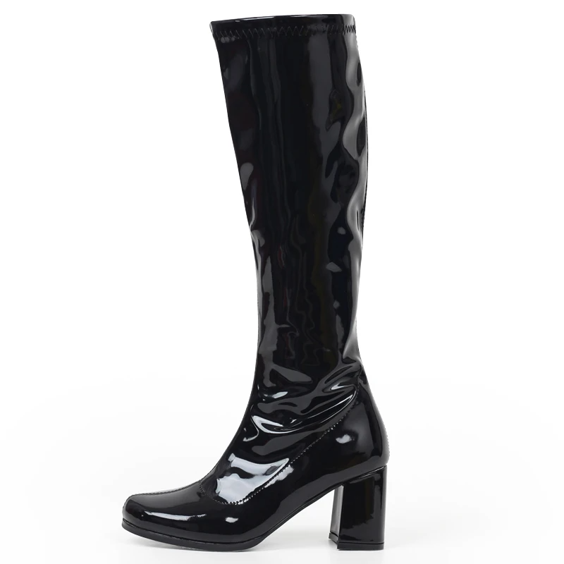 🖤 Bota Over The Knee Verniz com Salto Bloco – Brilho, Poder e Sofisticação