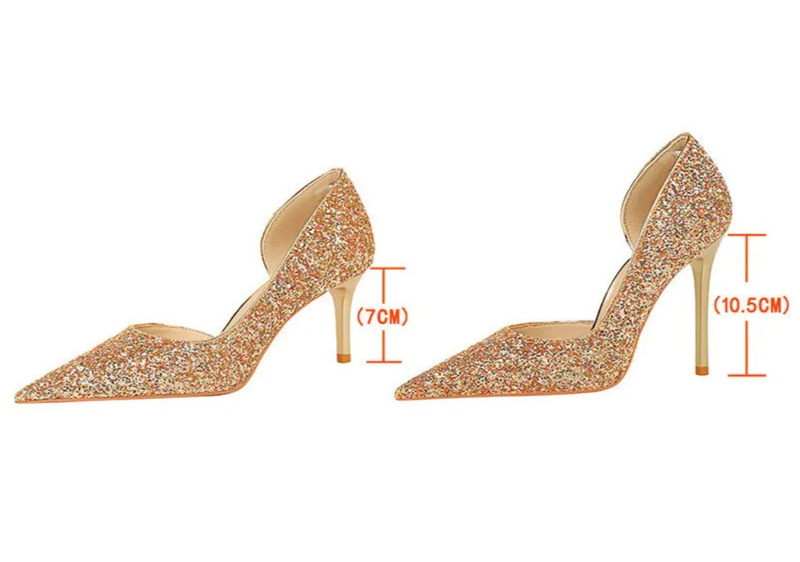 🖤 Scarpin de Luxo Dourado com Glitter – Brilho, Elegância e Sofisticação Saltos de 7cm a 10.5cm Olívia